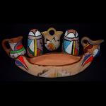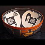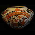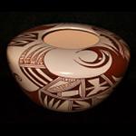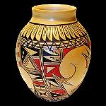 | SOUTHWEST POTTERY Among Native American cultures, the Southwestern tribes excelled in the creation of pottery. Production of pottery began in the Southwest region as early as 100 A.D., with each culture eventually developing their own unique styles. These styles were influenced by the needs of the people and the availability of clay and materials. Most Native American pottery was originally made for a functional purpose within each individual society. Common uses included cooking, storage, and the transportation of food and water. Women were the primary pottery makers. Since pottery was made from the earth, many clay vessels were considered sacred and used in certain religious ceremonies. With the opening of the railroad in the late 1800’s, tourists began to travel to the region marking the beginning of the modern era in Southwest pottery. Old patterns and styles became more artistic and pottery became smaller for easier packing to appeal to tourists. Roadside stands were set up near the railroad, and later along the major highways near the pueblos. Designs on southwest pottery range from abstract, geometric or floral, to animal or bird imagery. Many of these designs reflect, and are symbolic of mythological themes, stories, or religious beliefs, and continue to be painted today on contemporary pottery. It has been said that every pot tells a story. |