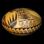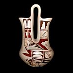 | HOPI - TEWA POTTERY Hopi -Tewa pottery dates back nearly 1,000 years. Ceramic vessels were constructed of local clay and crushed sherds were used for temper. The pottery was made in many forms, some for cooking and storage, and others for water and ceremonial usage. The Hopi and Tewa peoples were separate clan groups who merged together a long time ago and today share many cultural traditions. They are now known collectively as the Hopi – Tewa. In the late 1700’s, however, pottery production had nearly disappeared among the Hopi Pueblos, except for some limited production on First Mesa. The villages on First Mesa include Walpi, Sichomovi, Hano, and Polacca. In the late 1800’s, Nampeyo of Hano began to produce pottery using the designs from an ancient abandoned pueblo called Sikyatki. Much of her new style of pottery incorporated the ancient designs and shapes with her own style, and became known as “Sikyatki Revival” style pottery. Nampeyo’s pottery became popular among collectors, which led other First Mesa potters to follow in Nampeyo’s footsteps resulting in a renaissance in Hopi (Tewa) pottery. Nampeyo’s daughters, Annie, Nellie, and Fannie, become accomplished potters, and their families carry on the Nampeyo tradition today. Other noted Hopi potters include Paqua Naha, also known as “Frog Woman.” The word Paqua is Spanish for frog and her pottery is signed with a frog symbol. After her death, the name “Frog Woman” was passed onto her own daughter, Joy Navasie. The family, including Paqua’s granddaughters, continue to make pottery and sign with a frog symbol, tadpole, and their initials. Another major Hopi family is that of Helen Naha, or “Feather Woman.” Helen married Paqua Naha’s son Archie Naha and soon began to produce their own distinct style of pottery signed with a feather. Their children, Burel, Rainy, and Sylvia, are all potters, and the family continues to produce pottery today. The Setalla’s are another well-known Hopi pottery making family. Stetson, Agnes (Nahsonhoya,) Dee, Karen (Namoki), and Gwen, all make pottery after learning from their mother, Pauline, as well as their grandmothers and aunts. All produce award winning pottery. Of the ten children born to Pauline, five are noted to be potters. Most Hopi pottery is traditionally made of yellow pigmented hand-gathered clay base and varying shades of slips. The pottery is usually polychrome (two or more colors) and decorated with geometric or abstract designs. The Frog Woman and Feather Woman family pottery, however, is made with a distinguishable white clay slip and is often referred to as “Walpi Polychrome.” |
