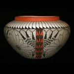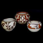 LAGUNA POTTERY It is held by archaeological excavations and Hopi tribal beliefs that Keresan-speaking people called Kawaika or “Lake people” migrated from Toko ’nabi, near the junction of the San Juan and Colorado Rivers and established a pueblo adjacent to the Hopi mesas overlooking Antelope Valley (Jeddito), calling it Kawaika. It is believed by some sources that it was destroyed by the Spaniards in 1540 and later abandoned around 1582. Laguna Pueblo was first established in 1699, after the Pueblo Revolt, by emigrants from surrounding areas who had previously fled from Spanish forces. There is evidence, however, with the discovery of ancient pottery sherds, that the site was inhabited prehistorically. Today, it is part of the Keresan speaking pueblos, and has over 2,500 square miles of territory. Early pottery from Laguna was very similar to that of Acoma with large water jars and ollas being produced around the turn of the century. There is also a close similarity between early Laguna and Zuni pottery. In the 1880’s, when the railroad was being built, a train depot was established at the Old Laguna village. By the 1920’s, with the influx of tourism, large scale pottery production decreased, and small tourist pieces were made for quick sale. By the 1950’s, pottery production at Laguna was nearly abandoned. In the 1970’s two potters brought the traditional pottery styles back from near extinction. Evelyn Cheromiah, and a few years later, Gladys Paquin, both considered master potters, researched and revived some of the old Laguna designs and forms. Evelyn worked under a federal grant to teach other Laguna artists the techniques of traditional Laguna pottery. She also received a special award for “encouraging a pottery renaissance.” Evelyn’s daughter, Lee Ann, has also become an accomplished potter, who has won awards at Indian Market in Santa Fe. Gladys is an award-winning artist having placed First place and Best of Division at Indian Market. She makes large ollas with old Laguna designs, and fires her pots outdoors. Both Gladys and Evelyn’s pots are highly sought after by collectors. Gladys’s son, Andrew Padilla, has established his own unique style of working with a white slip and forming his pieces into melon shaped pottery. He often forms terraced rain cloud lids for his elegant sculptural-like pottery. According to author Rick Dillingham, “Evelyn Cheromiah, Gladys Paquin, and Lee Ann Cheromiah are three outstanding potters who are an inspiration to younger potters” at Laguna. |