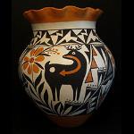 SOUTHWEST POTTERY Among Native American cultures, the Southwestern tribes excelled in the creation of pottery. Production of pottery began in the Southwest region as early as 100 A.D., with each culture eventually developing their own unique styles. These styles were influenced by the needs of the people and the availability of clay and materials. Most Native American pottery was originally made for a functional purpose within each individual society. Common uses included cooking, storage, and the transportation of food and water. Women were the primary pottery makers. Since pottery was made from the earth, many clay vessels were considered sacred and used in certain religious ceremonies. With the opening of the railroad in the late 1800’s, tourists began to travel to the region marking the beginning of the modern era in Southwest pottery. Old patterns and styles became more artistic and pottery became smaller for easier packing to appeal to tourists. Roadside stands were set up near the railroad, and later along the major highways near the pueblos. Designs on southwest pottery range from abstract, geometric or floral, to animal or bird imagery. Many of these designs reflect, and are symbolic of mythological themes, stories, or religious beliefs, and continue to be painted today on contemporary pottery. It has been said that every pot tells a story. |