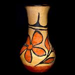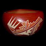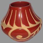 | SANTA CLARA POTTERY The famous archaeological site known as the Puye Cliffs, situated along the Pajarito Plateau, was home to 1,500 Pueblo Indians who lived, farmed and hunted from the 900s to 1580 A.D. These inhabitants migrated into the Rio Grande River valley and became the ancestors of today's Santa Clara people. Santa Clara is one of the most well-known of all the pueblos for its famous polished black pottery. Early Santa Clara pottery was typically plain black ware. Sarafina Tafoya was one of the leading potters during the 1920’s and 30’s. Her daughters, Margaret Tafoya and Christina Tafoya Naranjo carried on her tradition into the 1950’s and 60’s. Margaret Tafoya was one of the last to make pots with handles. She used different colors of slips applied to the outside of her vessels, and her later forms were highly polished, thinner, lighter and more graceful. She was not afraid of experimentation, going as far as adapting Greek and Roman forms to Santa Clara shapes. Many of her pots were decorated with the now famous bear paw design that made her pottery internationally known. The Tafoya family were instrumental in introducing the technique of incised or deeply carved pottery which became a distinctive characteristic of Santa Clara pottery. During the 1940’s and 50’s, red ware became popular. Most of the red ware was polychrome (three or more colors), with geometric designs and images. The Baca and Naranjo families became known for their red ware pottery. Another style that became popular during this time was the buff-colored band on an orange slip pottery, decorated with an “avanyu” or water serpent, made famous by the Gutierrez family. Lela and Van Gutierrez began this style, and their children, Luther and Margaret, continued the tradition throughout the 1960’s and 70’s. The water serpent is symbolic of good health, good luck, and happiness, as well as the bringer of rain and good crops. It is the most prevalent design found on Santa Clara pottery. Other noted potters from Santa Clara were Teresita Naranjo, and her daughter Stella Chavarria, Mary Cain, Joseph Lonewolf, and Grace Medicine Flower. Both Nathan and Nancy Youngblood are known for their modern and contemporary designs carved into traditionally made pots. Judy and Lincoln Tafoya were an award winning husband-wife team (until his recent death) who both made pottery in the traditional manner with deep carved designs on both large pots and plates. Renowned potter Tammy Garcia brought incised pottery into a whole new dimension with her large, intricately designed carved pots. Jody Naranjo is one of the most innovative new potters with her delicately incised, etched pots reflecting various scenes, including animal effigies such as deer, fish, and birds. |